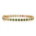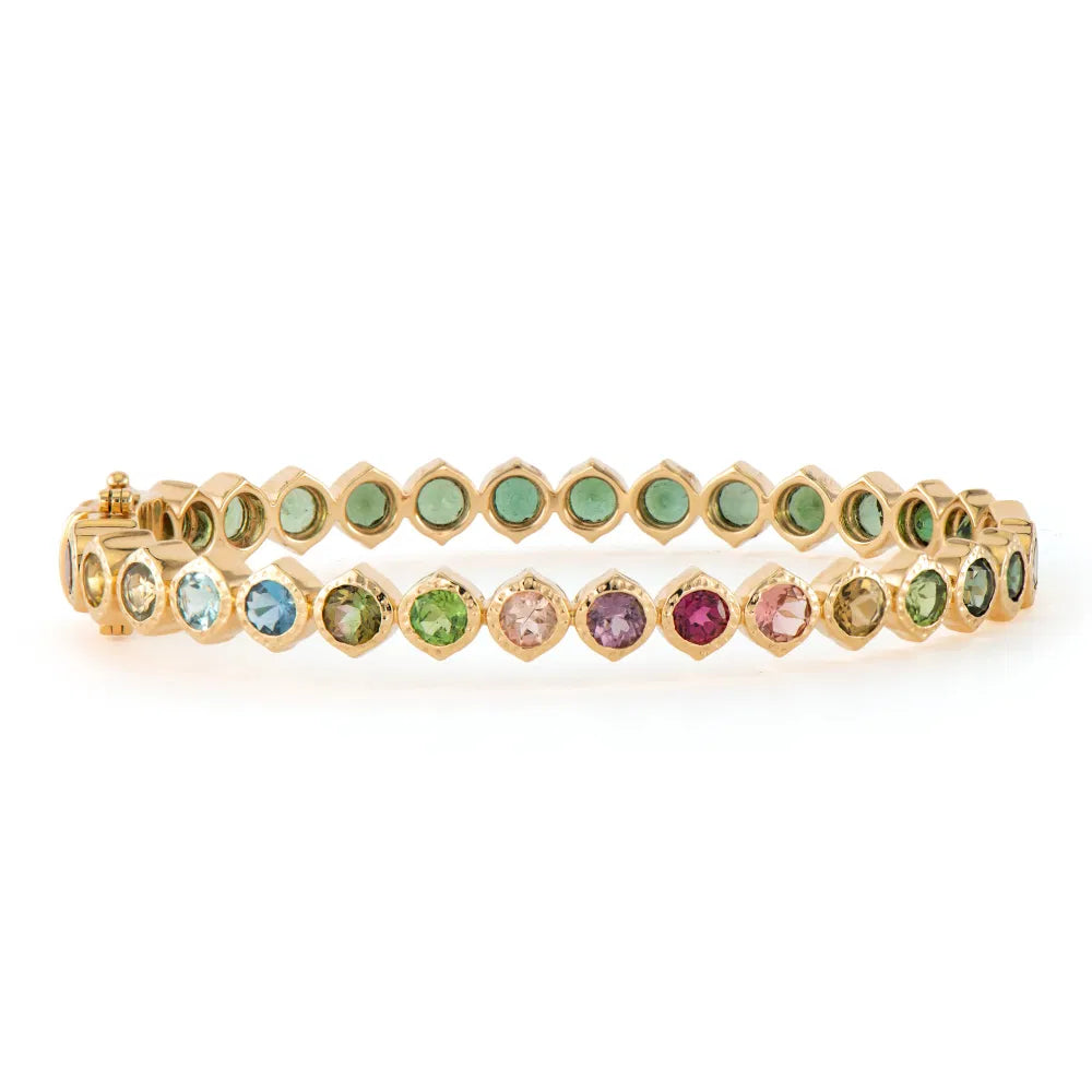 Star light, star bright... What do you wish for? Maybe the Wish on a Star Bezel Set Tourmaline Eternity Bangle for starters! The 14k yellow gold bangle features the new double teardrop bezel shape with muliti-colored tourmaline on one side and ombre green tourmaline on the other. This colorful bangle looks amazing alone or in a Three Stories bracelet stack.