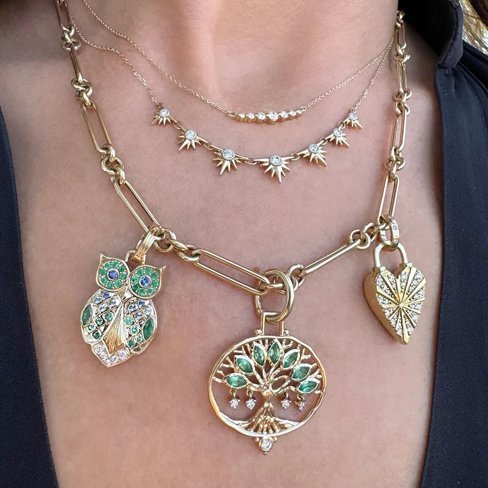 The graduated diamonds catch the light beautifully, while the curved bar creates an organic, flowing silhouette that sits perfectly at the collarbone. Suspended on a delicate chain with jump rings at 16, 17, and 18 inches, this versatile piece offers customizable length options. Perfect for wearing alone for everyday luxury or layered with other necklaces for a more dramatic effect.