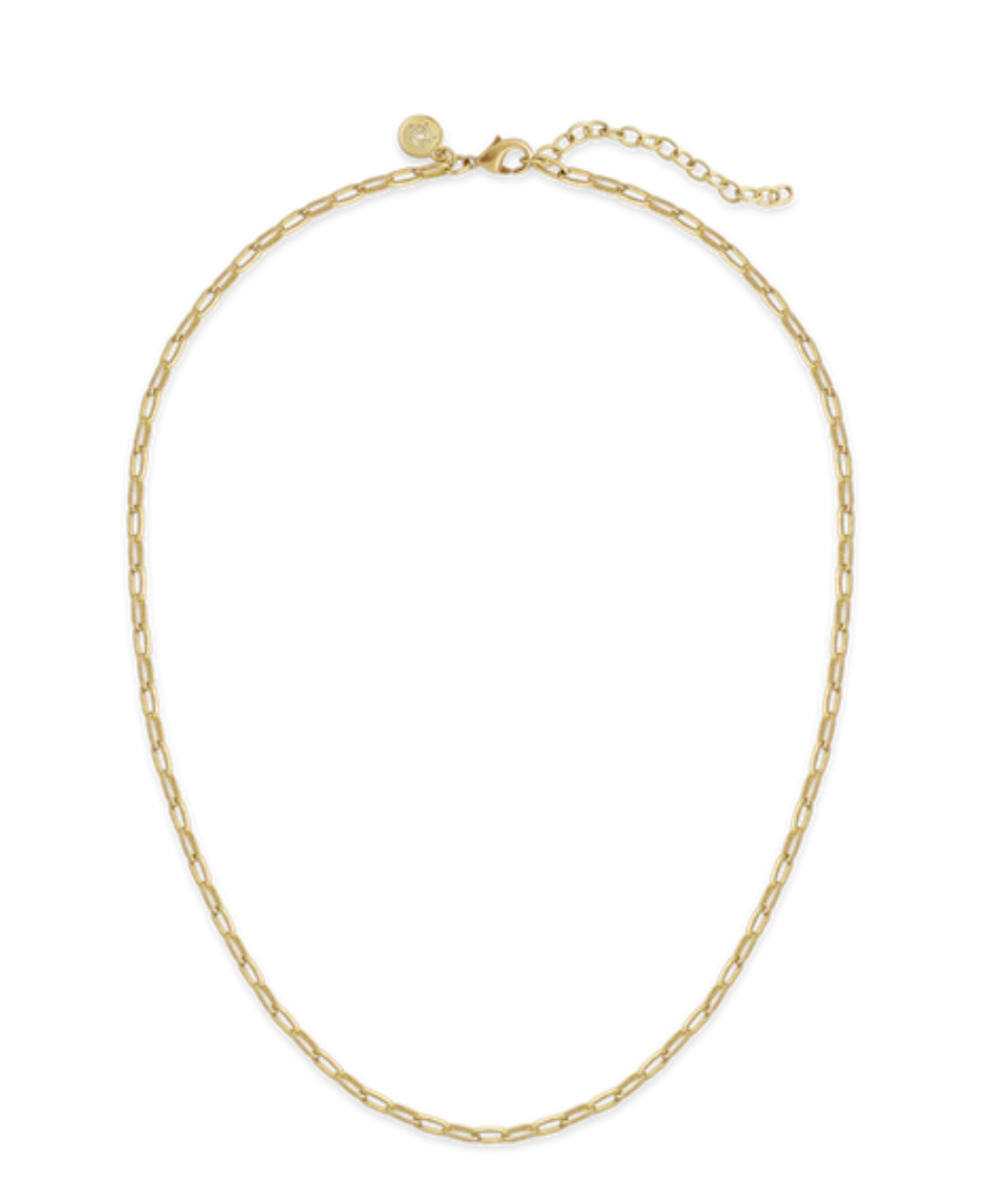 Our newest and most striking piece, the Maya Chain is painstakingly hand made from delicate links of ceramic coated brass and shines like gold (without the price). An elegant stand-alone chain to gift or receive -- or attach your favorite pendant to it for added pizzazz. 18” + 2” Extension.